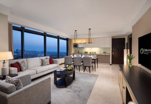 Oakwood Residence Hangzhou has completed a comprehensive transformation in 2023! Experience a complete renovations in both guest rooms and public areas, unlocking a new era of luxurious living. It is designed and built according to international five-star apartment standards. Located in the Yellow Dragon commercial area near the West Lake, Oakwood residence is surrounded by international corporations,shopping malls and leisure facilities.155 units of spacious apartments are well equipped with kitchen and laundry facilities. Fridge, microwave oven, electric stove, coffee machine, toaster are all installed.A professional service team is on service 24-7. Guests can enjoy various kinds of in-house services, including restaurant and bar, business center, gym, swimming pool.Difference room types range from 45 ㎡ Studio to 135 ㎡ 3-Bedroom Suite. No matter it is for long-stay or short-stay, Oakwood Residence Hangzhou will offer you international standard quality and home-like living environment.